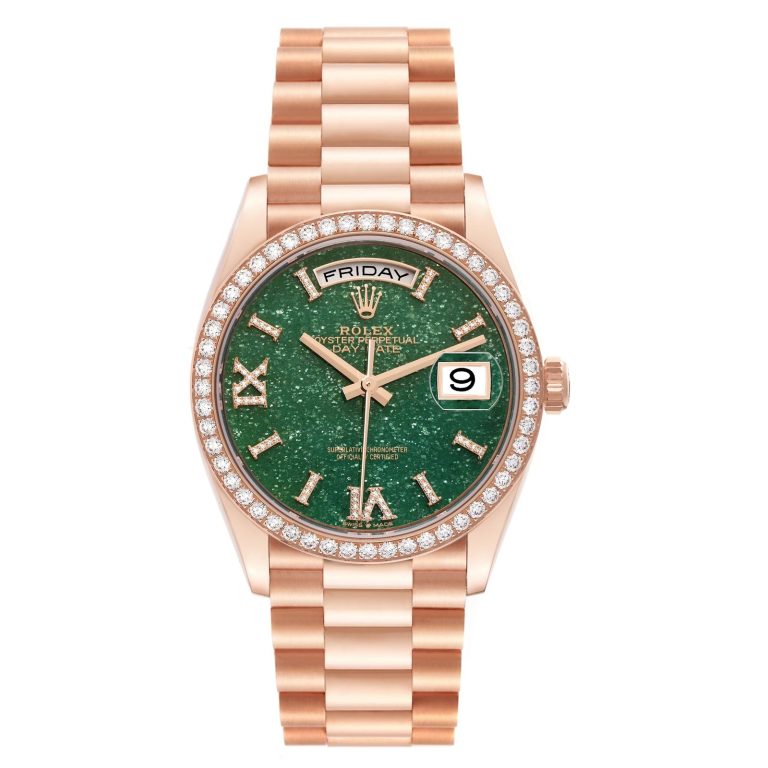 Rolex Day-Date Rose Gold Green Aventurine Diamond-Set Roman Dial Diamond Bezel Women’s Watch M128345RBR-0068