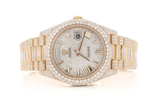 ROLEX DAY-DATE 40MM YELLOW AUTOMATIC STAINLESS STEEL WATCH FULL ICED MOISSANITE 19.50CT