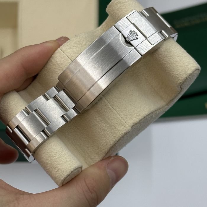 As you fasten the meticulously crafted 904L?stainless steel bracelet?around your wrist, you???ll appreciate the thoughtfully designed adjustable link and fold clasp, ensuring ultimate comfort and a perfect fit. The?black dial, fondly nicknamed the Rolex Kermit, stands out with its bold yet refined stick and dot indices. The silver-tone, Mercedes-logo hands, and the sword and Breguet-style shapes enhance the watch???s aesthetics, ensuring it???s as?striking?as it is functional.