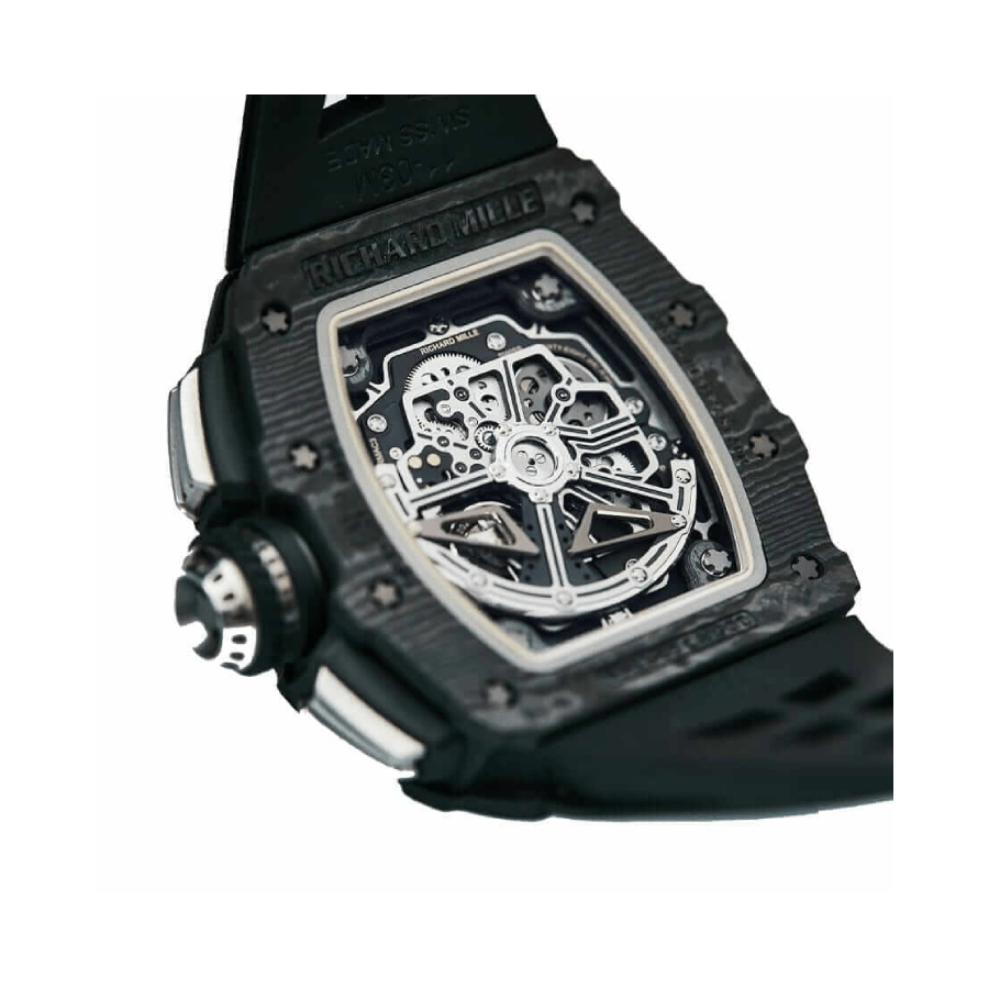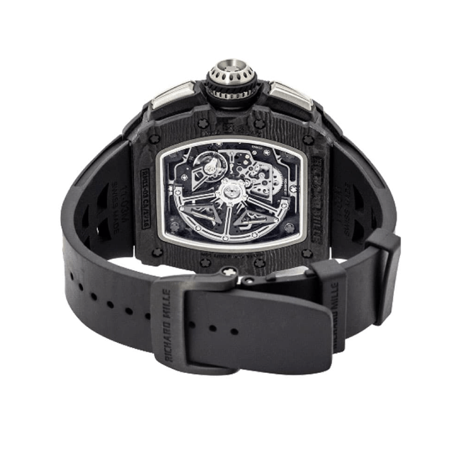 The Richard Mille RM11-03 Automatic Winding Flyback Replica is a luxurious watch that is sure to impress. The movement is an automatic caliber RMAC3 with a power reserve of 60 hours and a precision of -3/+3 seconds per day within COSC certification limits. The case is made of carbon and is black in color. with a sapphire crystal and a thickness of 16.23 mm. The bracelet is made of rubber and is adjustable for all sizes. with a 904L stainless steel double-fold clasp.